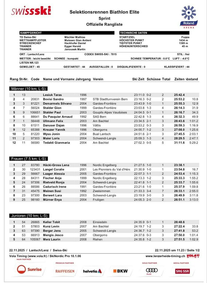 22 листопада український біатлоніст Тарас Лесюк став переможцем спринту на відбірковому змаганні в Швейцарії.