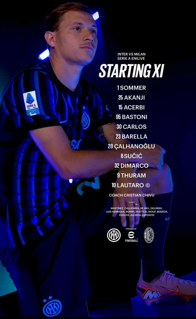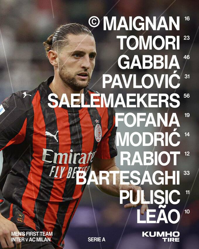 У нападі у нерадзуррі вийдуть Лаутаро Мартінес і Маркус Тюрам. В атаці у россонері зіграють Рафаель Леау і Крістіан Пулішич.