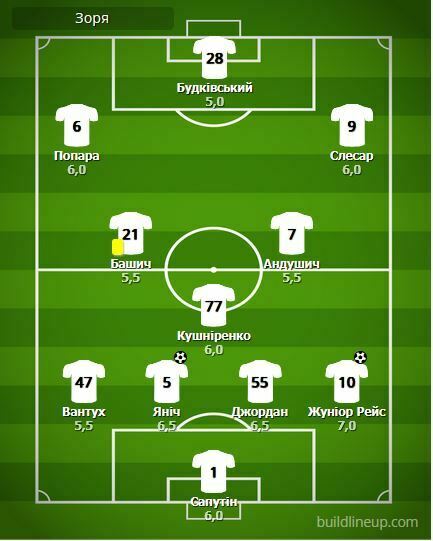 «Зоря»: Сапутін, Жуніор Рейс, Джордан (Мічін, 68), Яніч, Вантух, Кушніренко, Башич, Попара, Андушич, Будківський, Слесар (Саленко, 80).