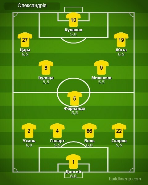 Заміни «Олександрії»: Шостак – 6,0; Кастільйо