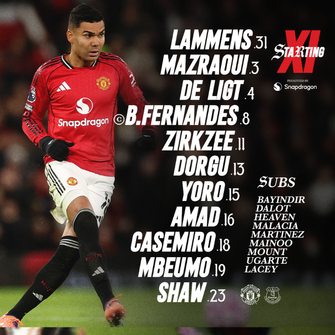 Ман Юнайтед: Ламменс, Мазрауї, Де Лігт, Бруну Фернандеш, Зіркзе, Доргу, Йоро, Амад, Каземіро, Мбемо, Шоу