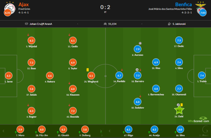 Оцінки за матч Аякс – Бенфіка:
