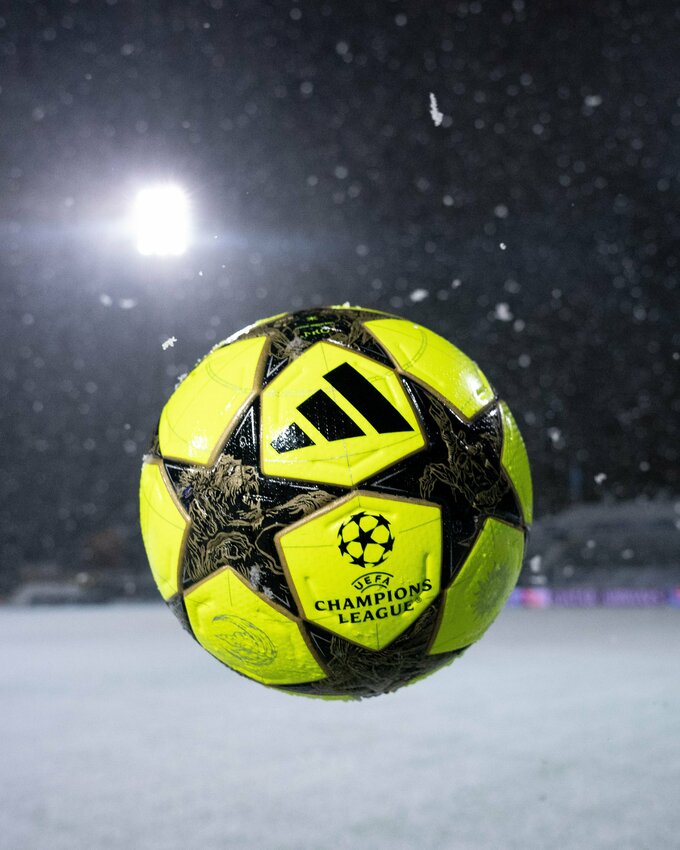 Новий м'яч від Adidas відрізняється від класичних дизайнів Ліги чемпіонів яскравим поєднанням чорного та жовтого кольорів, що робить його добре помітним на полі під час зимових матчів.