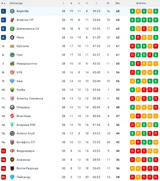 За результатом останнього матчу «Корітіба» мінімально переграла «Амазонас» на виїзді (1:2) та залишилися на першій сходинці в таблиці.