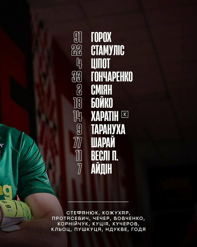 Запасні: Стефанюк, Кожухар, Стамуліс, Чечер, Вовченко, Кучеров, Пушкуца.