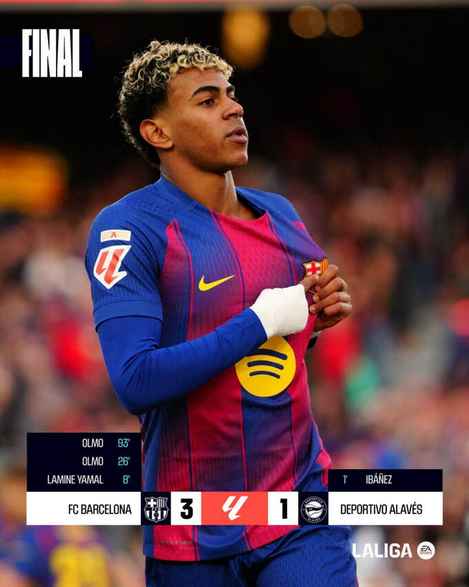 Голами за синьо-гранатових відзначилися Ламін Ямаль і Дані Ольмо (дубль). По одному асисту до свого активу записали Роберт Левандовськи, Рафінья та Ямаль. У гостей єдиний гол оформив Пабло Ібаньєс.