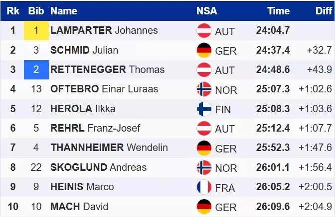 Другу поспіль перемогу в новому сезоні завоював австрієць Йоханнес Лампартер, який завершив із загальним часом 24:04.7.