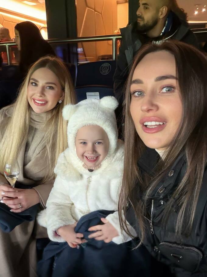 Леус оприлюднила у соцмережах серію фото та відео з трибун стадіону. На знімках вона позує разом з Ангеліною та другою донькою Аделіною.