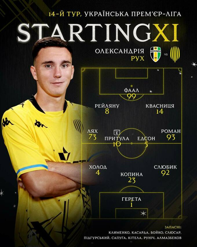 Олександрія та Рух оголосили стартові склади на матч УПЛ