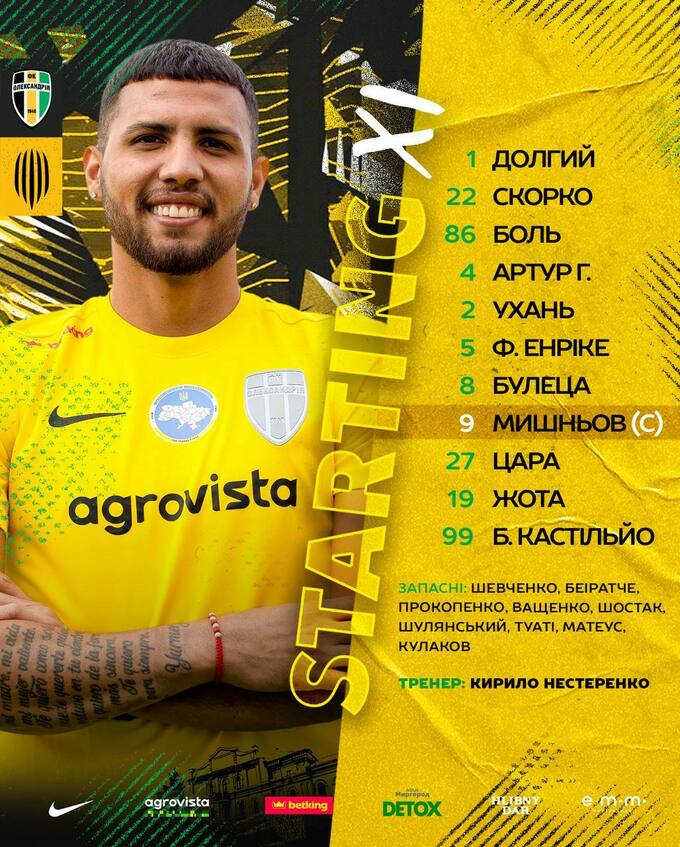 Олександрія: Долгий – Скорко, Боль, Голарт, Ухань, Енріке, Булеца, Мишньов, Жота, Цара, Кастільйо