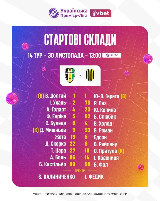 Матч 14-го туру УПЛ розпочнеться о 13:00