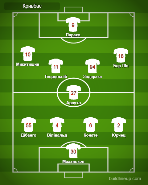 «Кривбас»: Маханьков – Дібанго, Вілівальд, Конате, Юрчец – Араухо – Микитишин (Бекавац, 74), Твердохліб, Задерака, Бар Лін (Шевченко, 74) – Парако (Мулик, 88).
