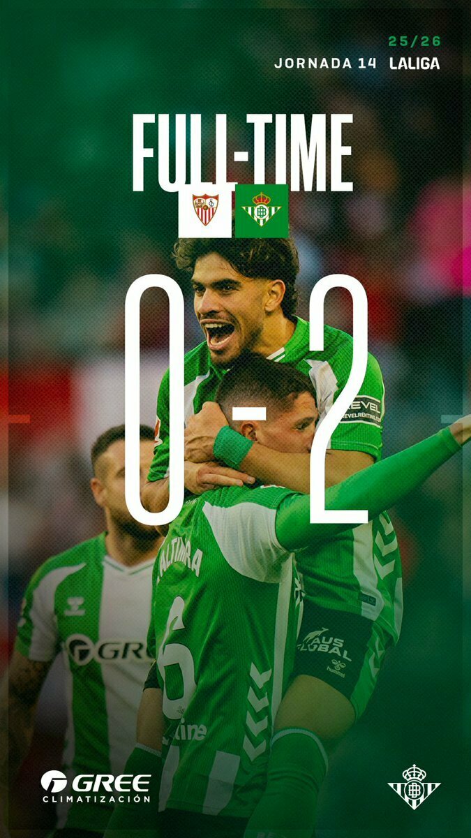 Зелено-білі здолали Севілью з рахунком 2:0 у поєдинку 14-го туру Ла Ліги 2025/26