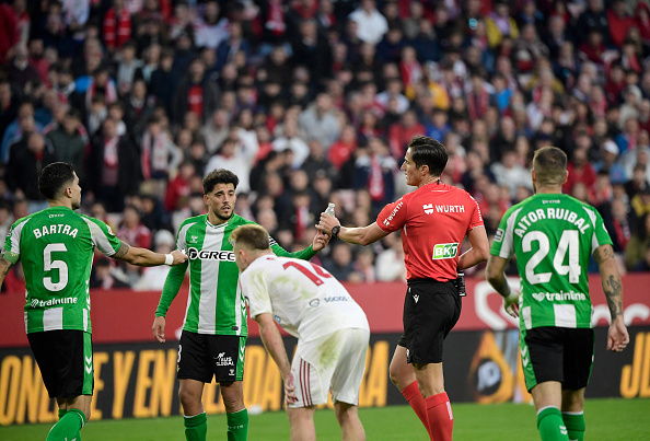 Головний арбітр призупинив гру після того, як воротаря Бетіса Альваро Вальєса почали закидати різними предметами з трибун. Суддя закликав гравців залишити поле.