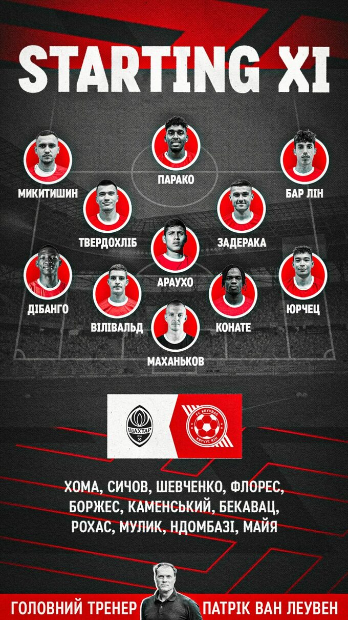 Кривбас: Маханьков, Юрчец, Конате, Вілівальд, Дібанго, Араухо, Задерака, Твердохліб, Бар Лін, Микитишин, Парако
