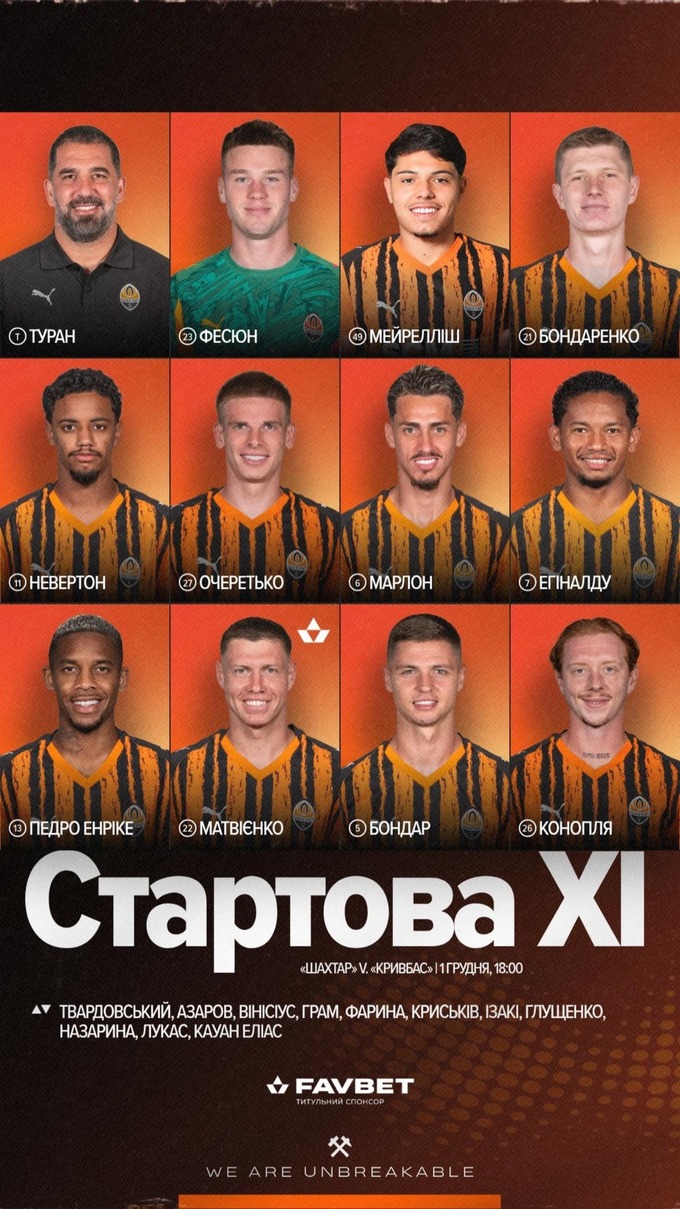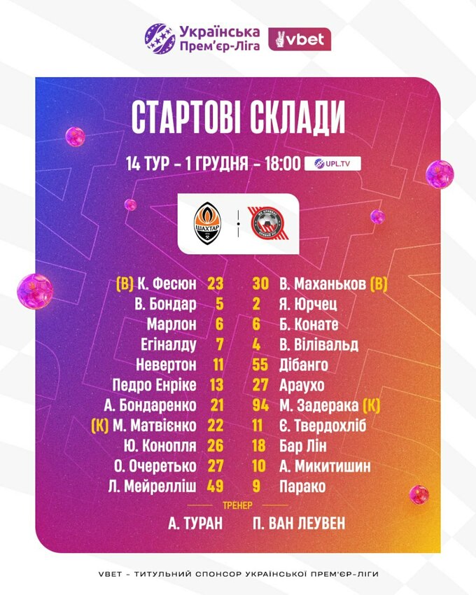 У матчі 14-го туру Української Прем'єр-ліги 2025/26, який відбудеться 1 грудня, зіграють донецький «Шахтар» та криворізький «Кривбас».