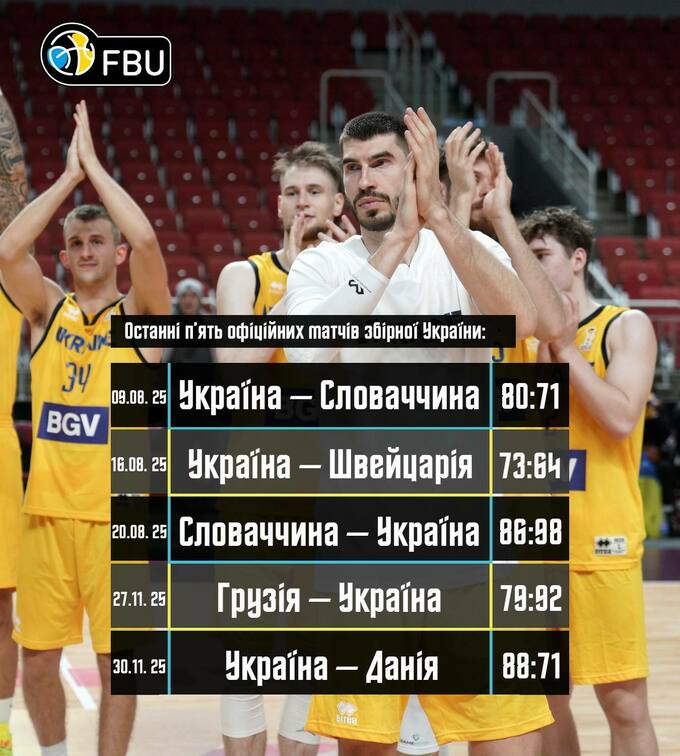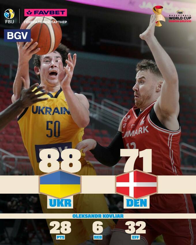 Збірна України з баскетболу здобула другу перемогу в кваліфікації чемпіонату світу 2027, перегравши в Ризі команду Данії (88:71).