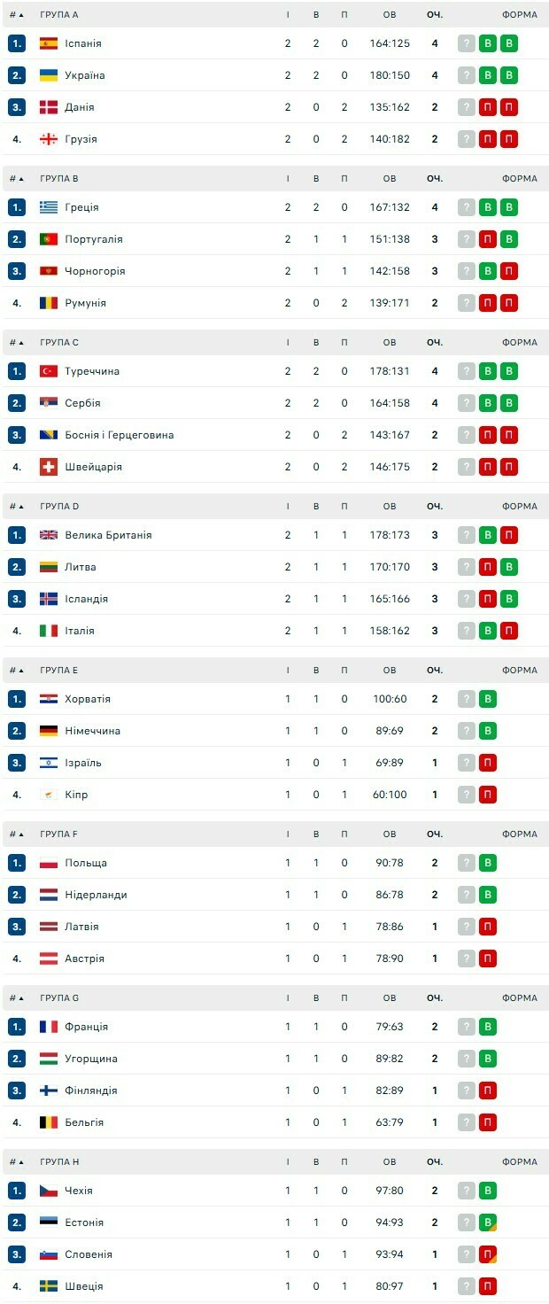 Відбір ЧС з баскетболу. Іспанія та Україна лідирують у групі з 2 перемогами