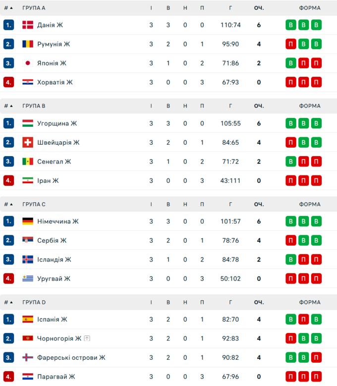 - Угорщина – Швейцарія – 32:25 (13:14)
