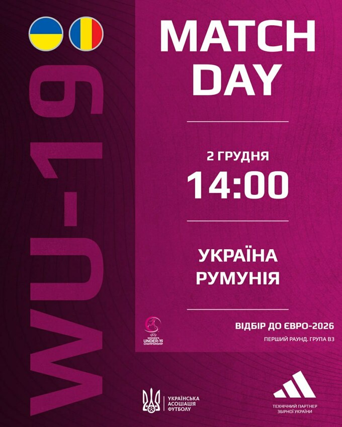 Дивіться 2 грудня о 14:00 матч 3-го туру кваліфікації ЧЄ-2026 WU-19