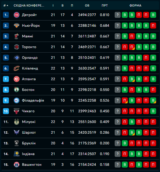 Турнірні таблиці