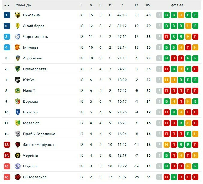 Турнірна таблиця
