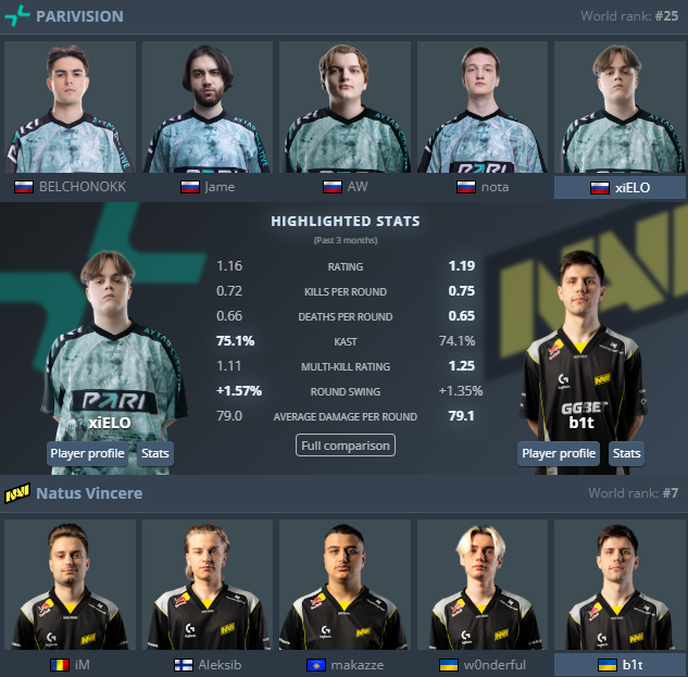 NAVI наразі посідають 7-му позицію у світовому рейтингу HLTV, тоді як PVISION розташовані значно нижче та знаходяться на 25-тій сходинці рейтингу.