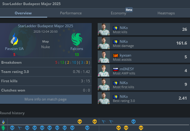 Український клуб Passion UA, власником якого є Олександр Зінченко, провів свій другий матч третього етапу Budapest Major 2025 проти одного з фаворитів турніру – Falcons. Поєдинок відбувся у форматі Bo1 на мапі Nuke.
