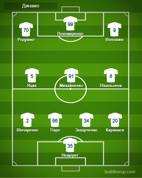 «Динамо»: Нещерет – Вівчаренко, Тіаре, Захарченко (Михавко, 88), Караваєв – Яцик, Михайленко, Піхальонок (Шапаренко, 77) – Редушко (Кабаєв, 62), Пономаренко (Герреро, 62), Волошин.