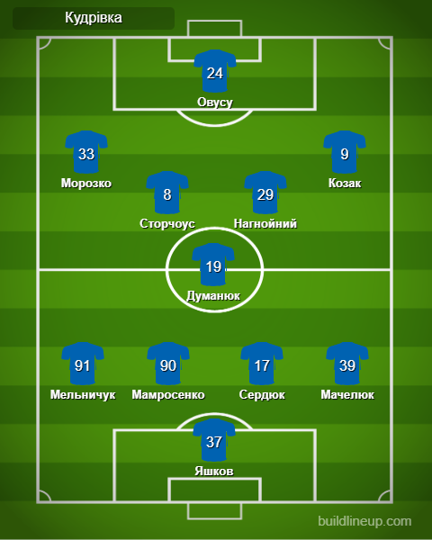 «Кудрівка»: Яшков – Мельничук, Мамросенко, Сердюк, Мачелюк – Сторчоус (Коркішко, 68), Думанюк (Матвєєв, 46), Нагнойний – Морозко (Світюха, 68), Овусу (Демченко, 77), Козак (Рогозинський, 25).