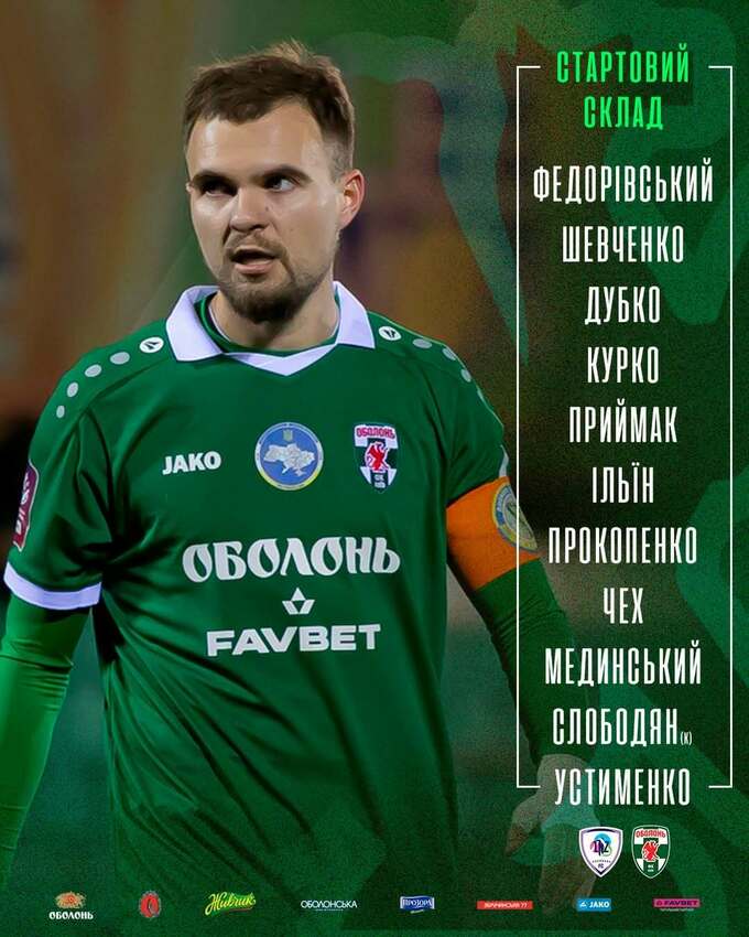 Оболонь: Федорівський, Шевченко, Дубко, Курко, Приймак, Ільїн, Прокопенко, Чех, Мединський, Слободян, Устименко