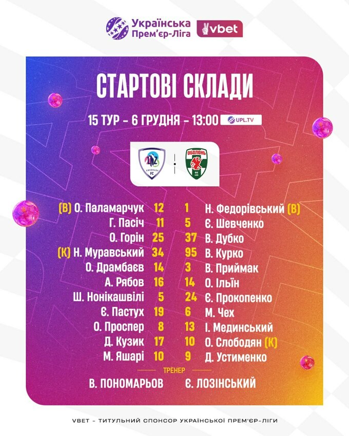 У матчі 15-го туру Української Прем'єр-ліги 2025/26, який відбудеться 6 грудня, зіграють черкаський ЛНЗ та київська «Оболонь».