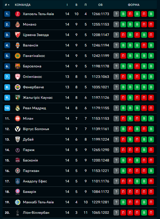 Євроліга. Регулярний чемпіонат, 14-й тур, 5 грудня