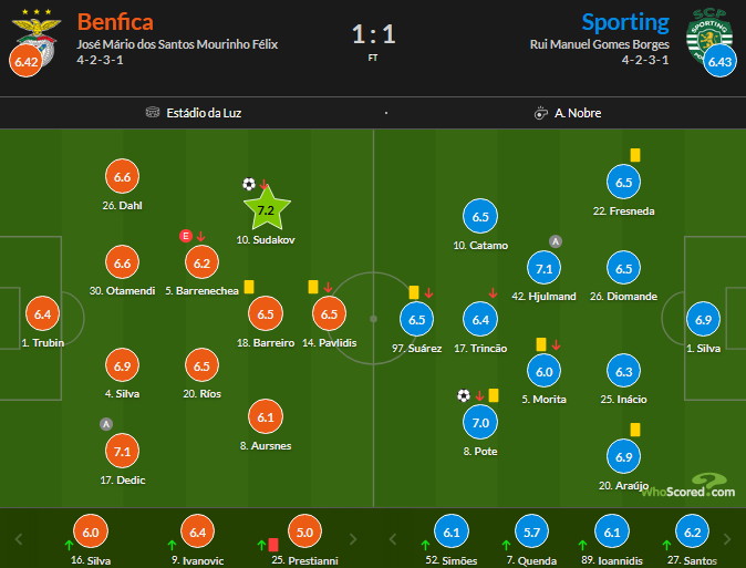 Оцінки WhoScored за матч Бенфіка – Спортінг (1:1)