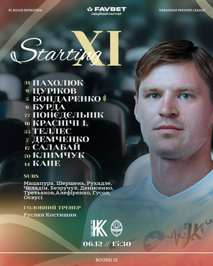 У суботу, 6 грудня, відбудеться поєдинок 15-го туру Української Прем'єр-ліги, у якому змагатимуться ковалівський «Колос» та донецький «Шахтар». Матч пройде у Ковалівці, на полі стадіону «Колос», початок о 15:30.
