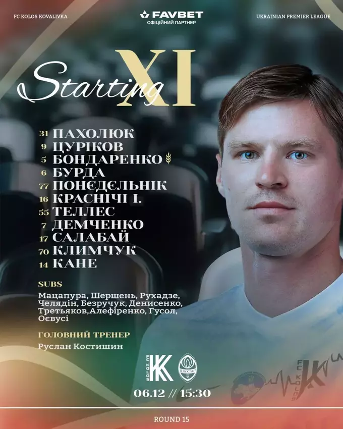 У суботу, 6 грудня, відбудеться матч 15-го туру Української Прем'єр-ліги 2025/26, в якому зустрінуться «Колос» з Ковалівки та донецький «Шахтар».