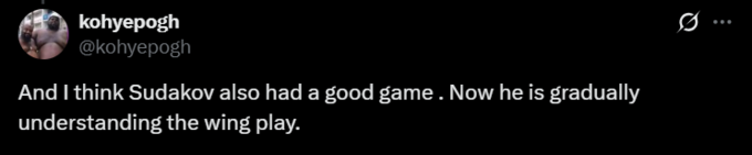 kohyepogh: І я думаю, що Судаков добре зіграв. Тепер він поступово розуміє гру на флангах.