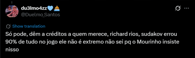 du3lmo4zz: Судаков зробив 90% помилок у грі, він не вінгер, я не знаю, чому Моурінью наполягає на цьому.