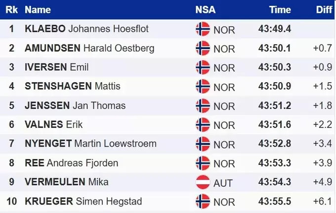 На домашній трасі норвезькі лижники продемонстрували повну домінацію, зайнявши дев’ять позицій у топ-10.