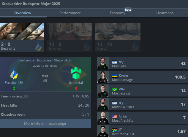 Passion UA закріпилися у кошику 2-2, вибивши Imperial з Budapest Major після впевненої перемоги з рахунком 2:0.