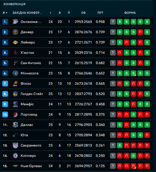 Головними переслідувачами «Оклахоми» залишаються «Денвер» та «Лейкерс».