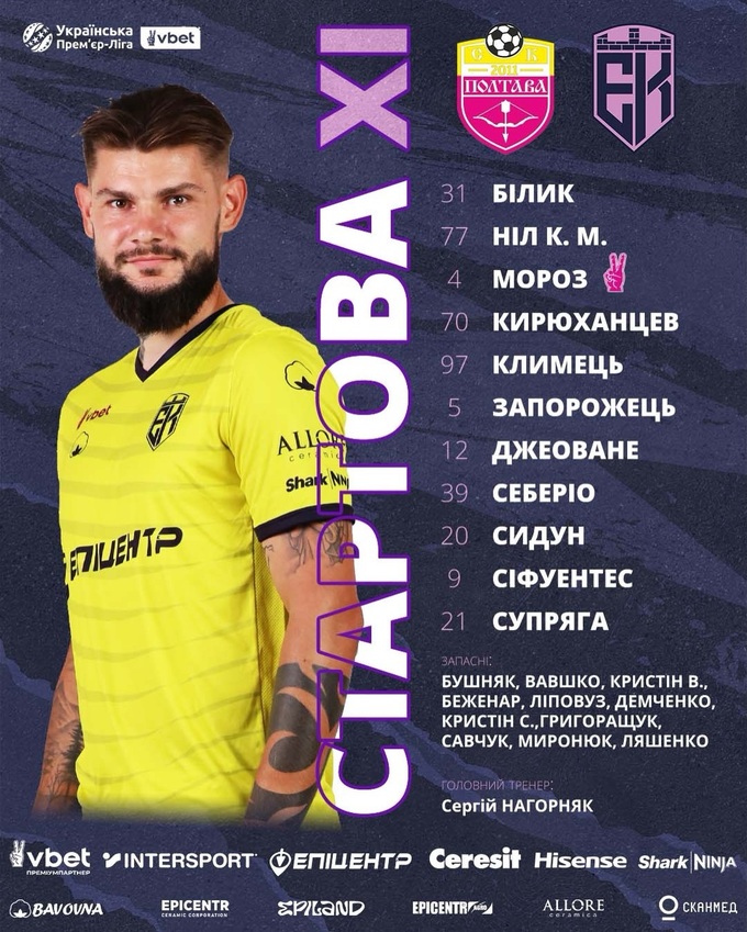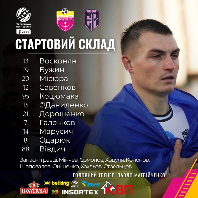 СК «Полтава»: Восконян – Коцюмака, Місюра, Савенков, Бужин – Даниленко, Дорошенко – Галенков, Одарюк – Марусич, Вівдич.