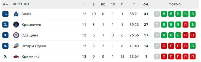Сокіл виграв у аутсайдера з рахунком 8:3 і впевнено лідирує у таблиці, випереджаючи Кременчук на чотири пункти.