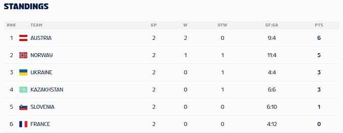 Збірна України спершу виграла у Казахстану в овертаймі 2:1, а потім програла Норвегії в овертаймі 2:3.