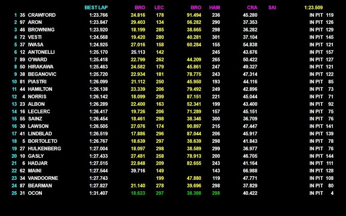 Кімі Антонеллі став найшвидшим серед основних пілотів – шостим. У середині пелотону розташувалися Оскар Піастрі, Льюїс Хемілтон та новоспечений чемпіон світу Ландо Норріс.