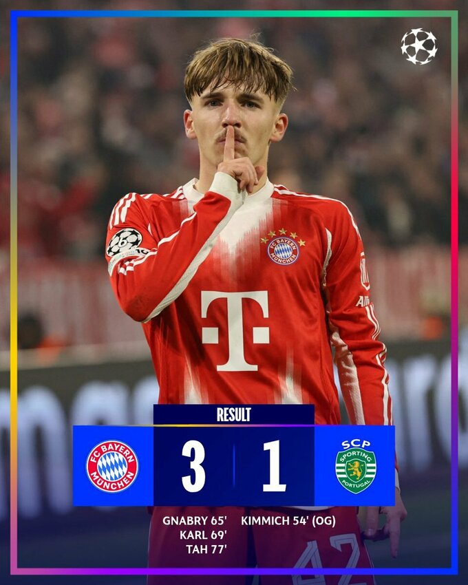Завдяки цій перемозі Баварія набрала 15 очок з 18 можливих. У Спортінга в активі 10 пунктів.