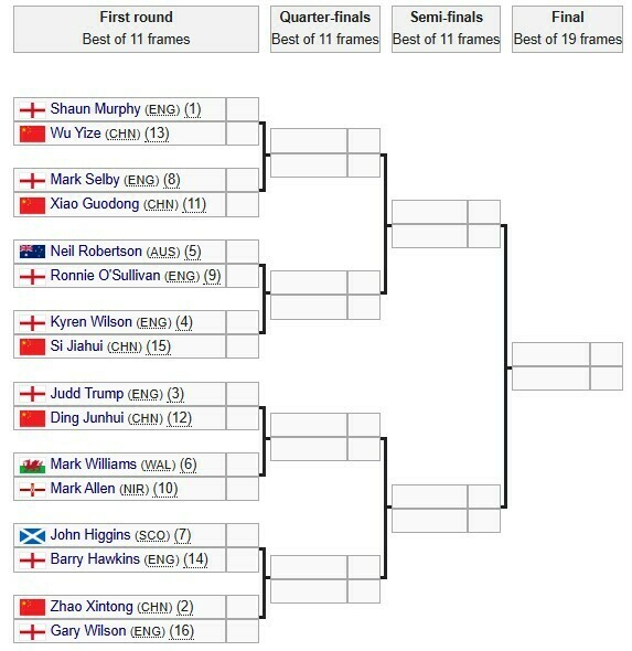 Чинний володар трофею Шон Мерфі зустрінеться з китайцем У Іцзе й з цього матчу розпочне захист свого титулу.