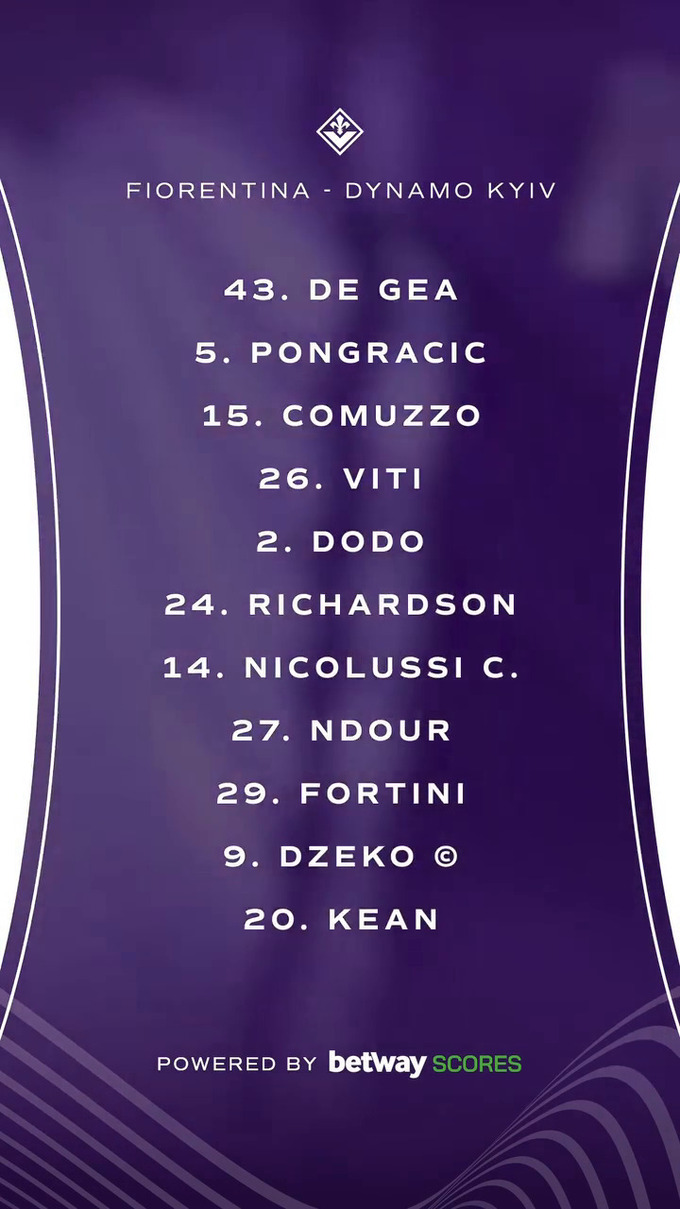 Стартовий склад Фіорентини на матч п'ятого туру Ліги конференцій