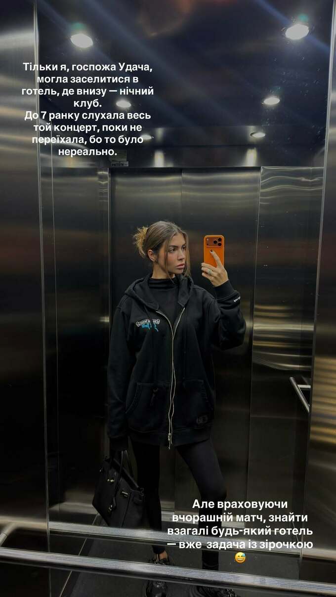 Вона опублікувала кадри з трибун, але згодом розповіла про неприємний сюрприз: її номер виявився над нічним клубом.