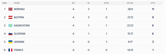 Збірна України програла Австрії і залишається на передостанньому місці з трьома очками. За підвищення у класі ведуть боротьбу Норвегія (11 пунктів) та Австрія (9).